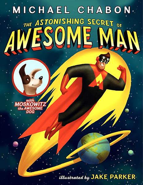 THE ASTONISHING SECRET OF AWESOME MAN (WITH MOSKOWITZ, THE AWESOME DOG) by Michael Chabon with illustrations by Jake Parker (Balzer and Bray 2011)at first seems like your typical superhero takes on archnemesis book. However, there are some clues here and there abut the true identity of Awesome Man. Join him as he fights slime monsters and his worst enemy The Flaming Eyeball. Awesome Man's true identity, if you have not figured it out, is revealed on the final pages of this awesome book.